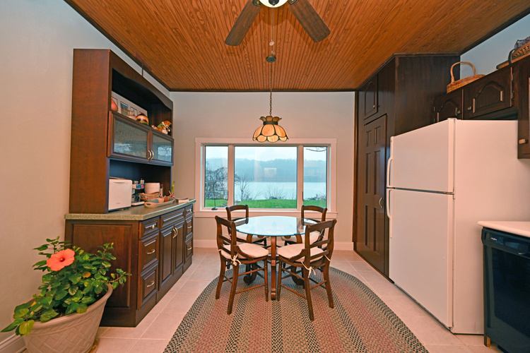 This large eat in kitchen features a huge picture window staring right at the great Ohio River. Kitchen has wood lined ceiling, dining pass thru, walkout to covered porch, and hook ups for a potential laundry addition.
